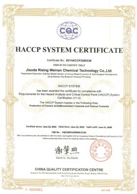 公司通過了ISO9001:2015、HACCP認證和FSSC22000等質量安全管理體系認證。